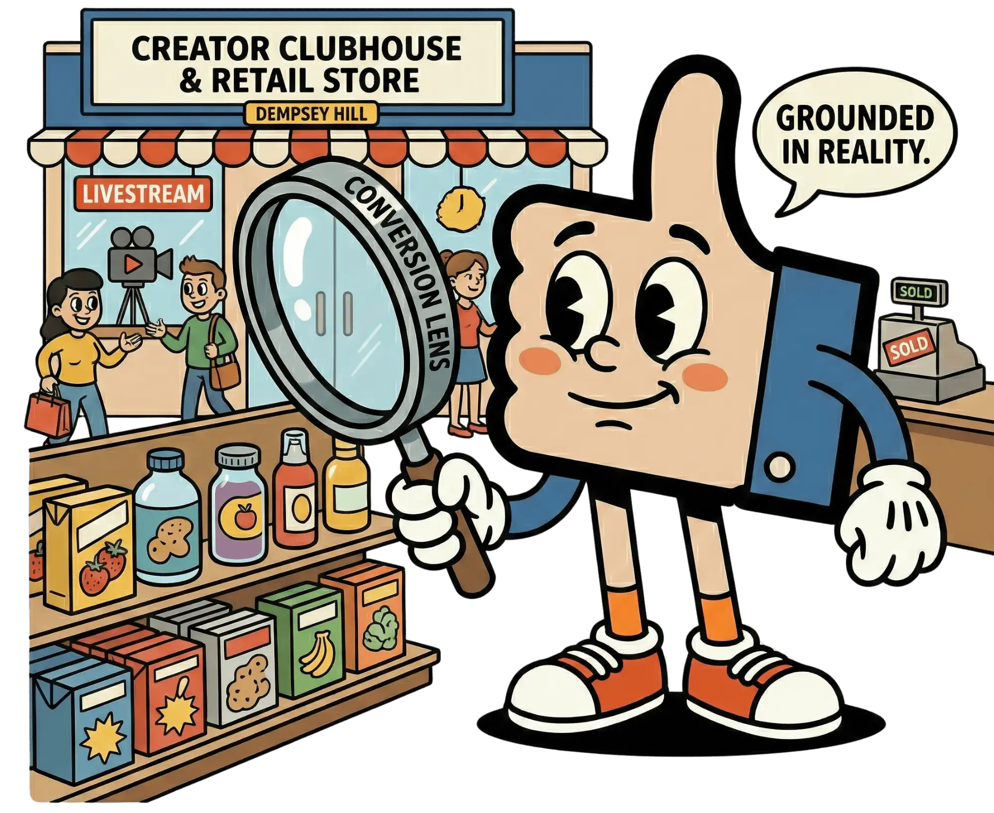 We operate a 1,550 sqft creator clubhouse and retail store at Dempsey Hill with rent paid, staff on the floor selling to customers and creators daily, and weekly livestreams.