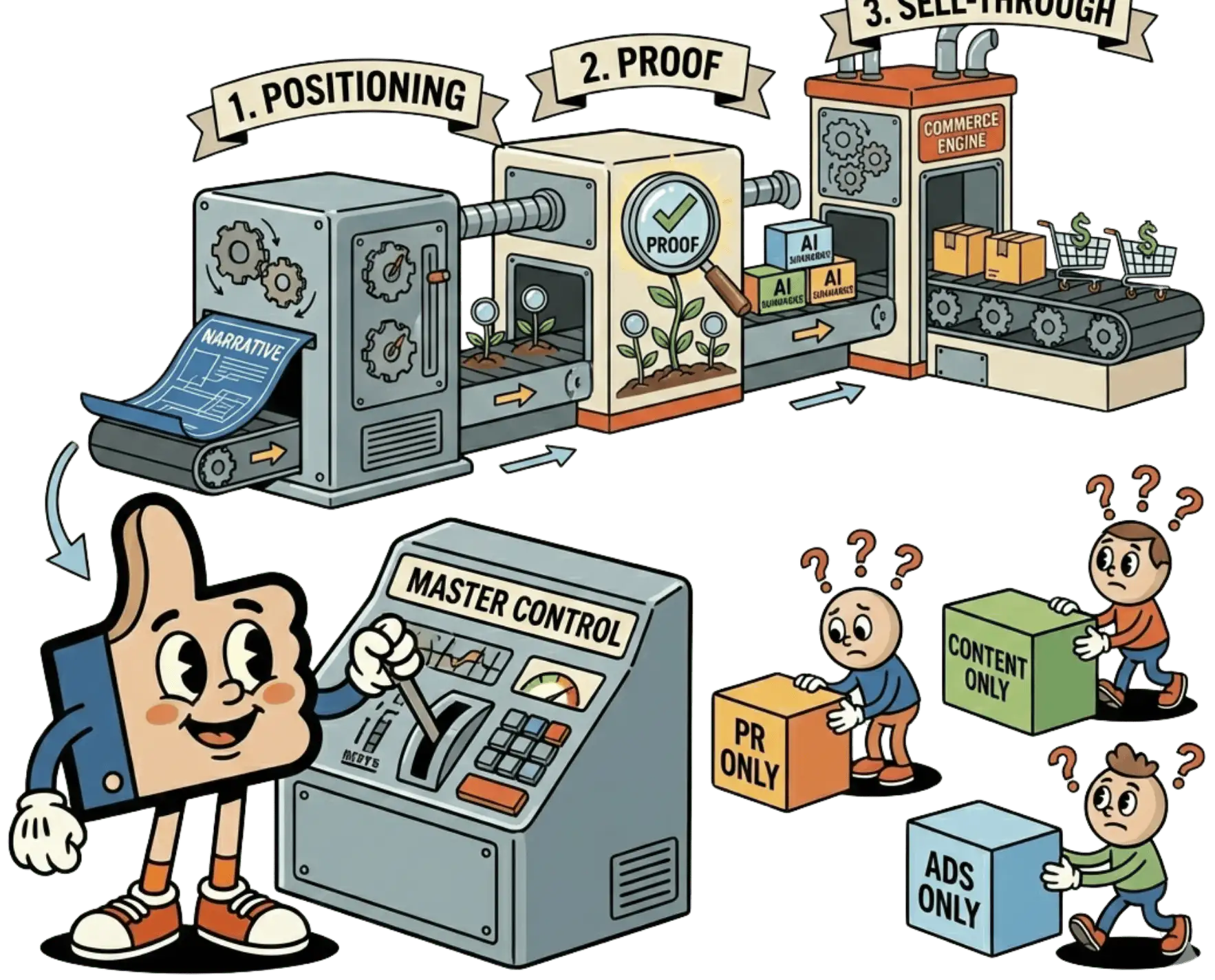 Most agencies specialise in one lever. PR agencies will tell you that you need PR first. Social agencies will say “more content!”. Media agencies will say “more ads!”